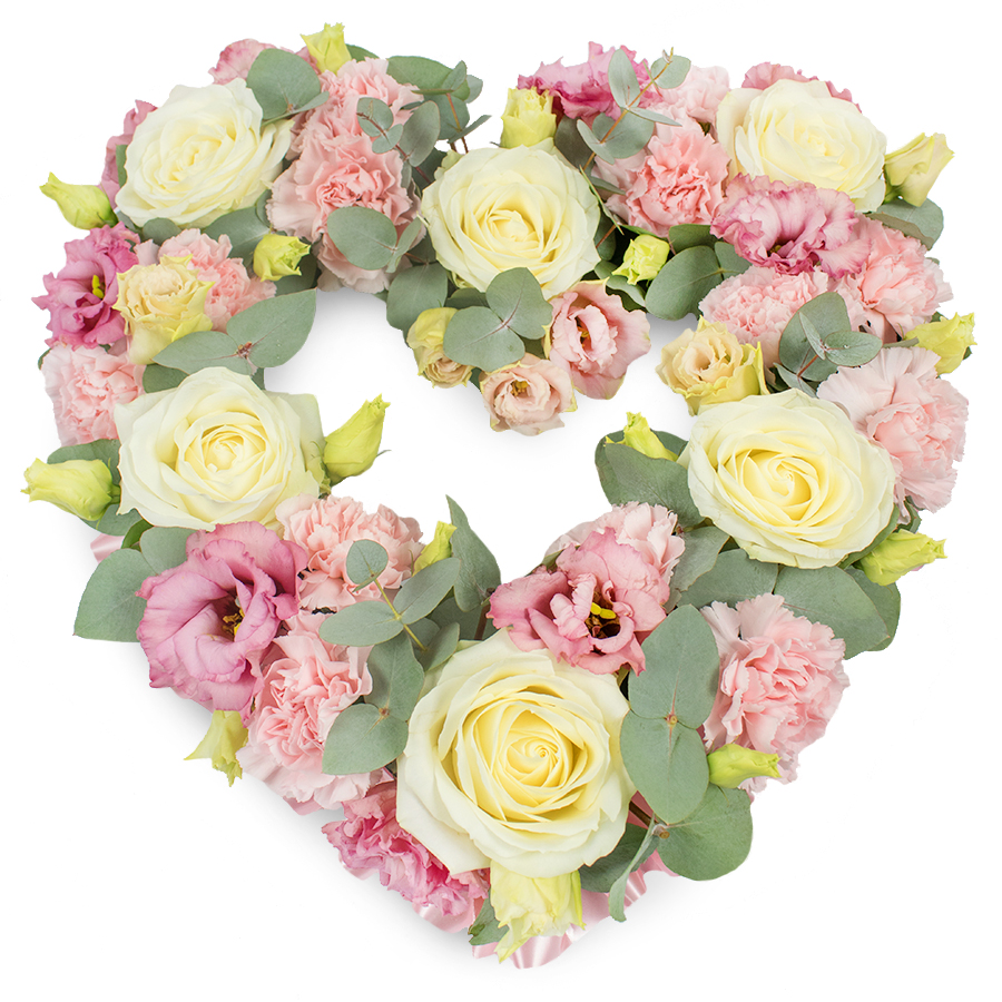 Celebrate meaningful moments with our Stunning Open Heart Floral Arrangement, thoughtfully designed to convey your emotions. This exquisite bouquet features elegant white roses, soft pink carnations, beautiful pink lisianthus, and fragrant eucalyptus leaves.